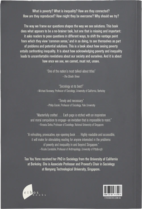 The way we frame our questions shapes the way we see solutions. This book does what appears to be a no-brainer task, but one that is missing and important: it asks readers to pose questions in different ways, to shift the vantage point from which they view ‘common sense,’ and in so doing, to see themselves as part of problems and potential solutions. This is a book about how seeing poverty entails confronting inequality. It is about how acknowledging poverty and inequality leads to uncomfortable revelations about our society and ourselves. And it is about how once we see, we cannot, must not, unsee.